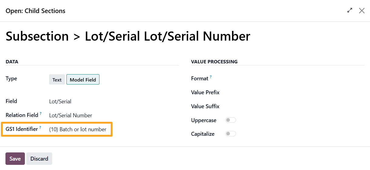 04In the Data section, select the GS1 Identifier corresponding to the field value
