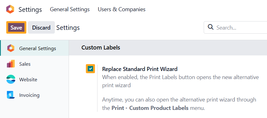 Open the Settings — General Settings menu and in the Custom Labels section, enable the Replace Standard Print Wizard option: