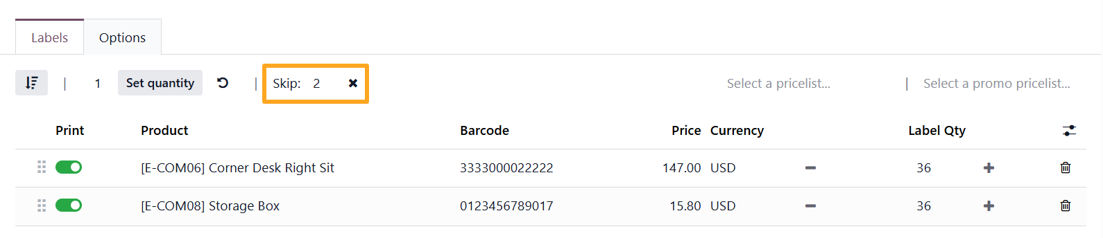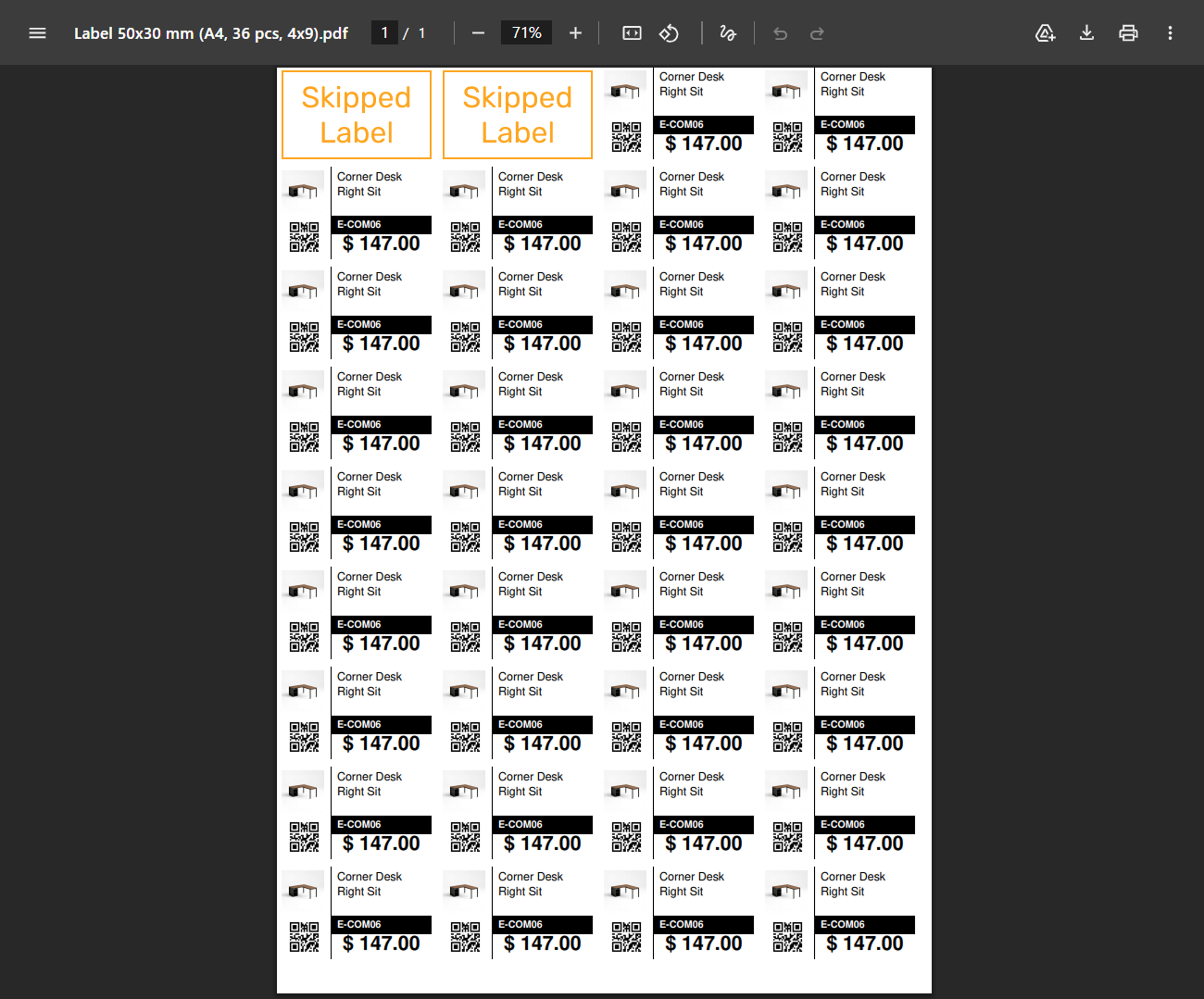 The Skip value defines the number of empty labels at the beginning of the page (useful for multi-label layouts). Result: