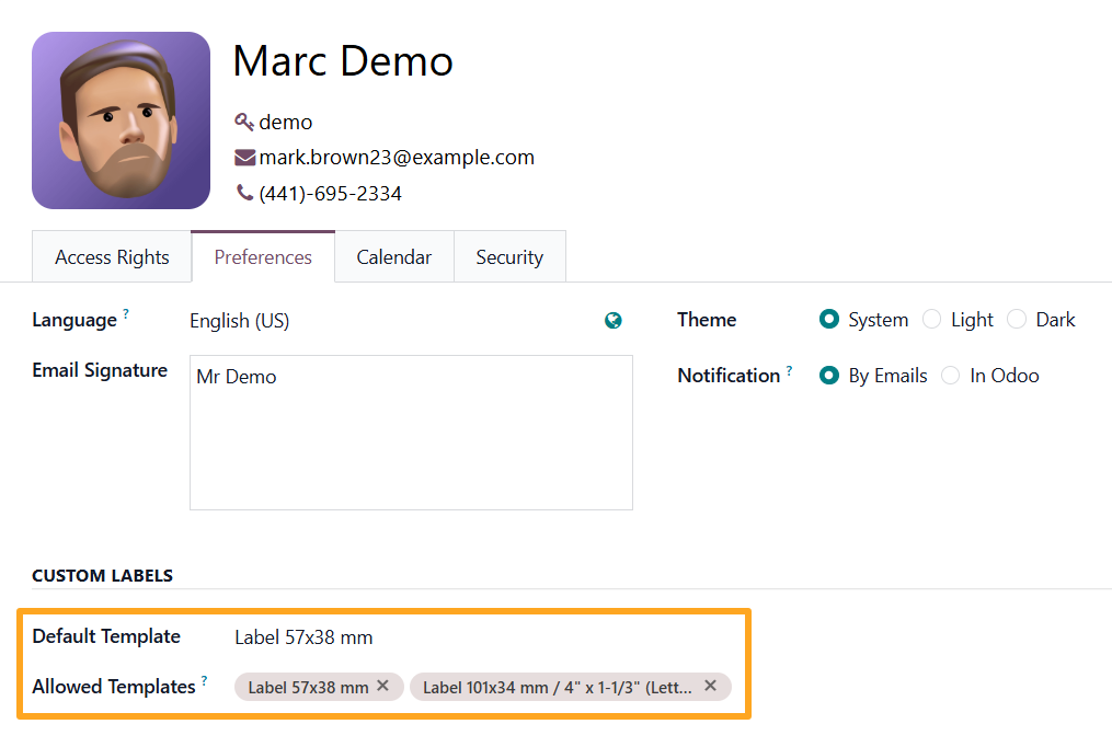 Per-user configuration is supported on the user form. Go to the Preferences tab and configure the Custom Labels section: