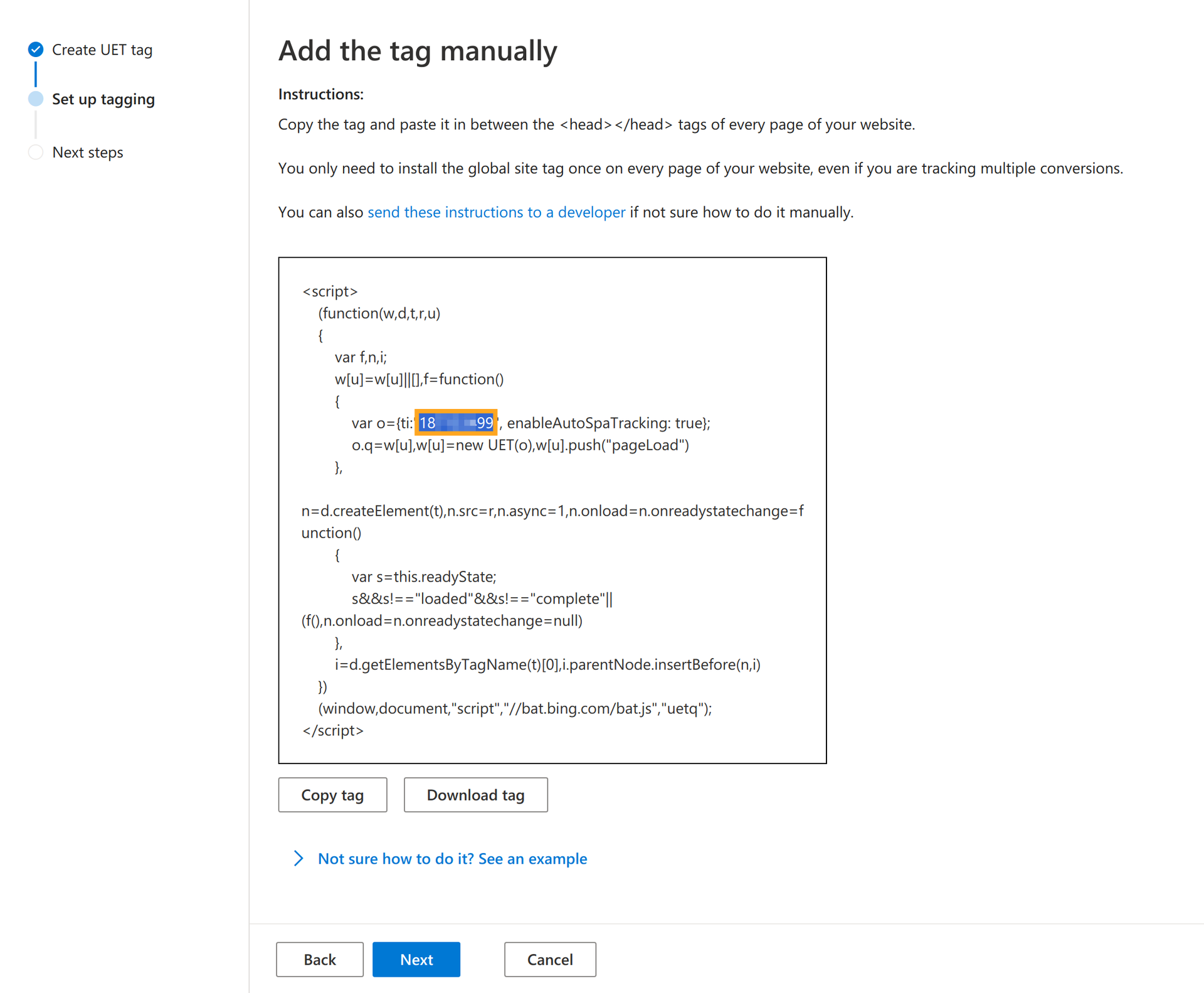By following these steps, create your UET Tag and retrieve this tag ID: